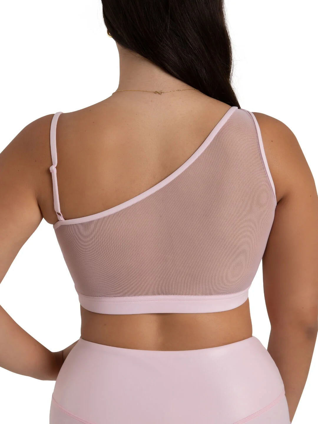 Experience the stunning design of the Niki Bra from the Curved Rhythm collection. This camisole bra top features a unique asymmetrical neckline and straps that blend into an elegant mesh back, dyed to match for seamless style. Made from a luxurious blend of Nylon and Spandex, the Niki Bra ensures ultimate comfort and flexibility. The adjustable left strap allows for a customized fit, while the fully front-lined construction in all colors offers superior support. The Niki Bra top pairs perfectly with the Janine Legging or the Barbara Short. Available in adult sizes only.